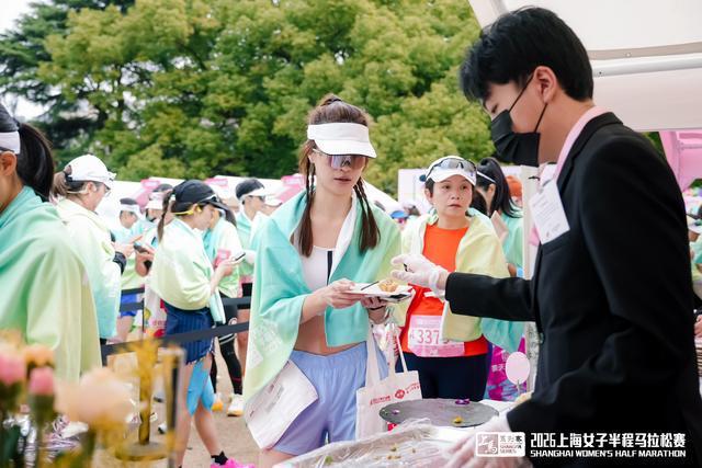 当天正值“三八”国际妇女节,在中山公园终点处,手持鲜花的男士向每一位冲过终点的女性跑者致以祝贺。在公园开阔的草坪上,组委会精心准备了各类精致甜点与清爽饮品,现场还设有专业的美妆美发服务区,帮助完赛跑者快速整理仪容,以最佳姿态记录这一值得珍藏的时刻,在春光中定格属于自己的高光瞬间。
